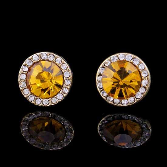 Gold Crystal Round Halo Stud Earrings