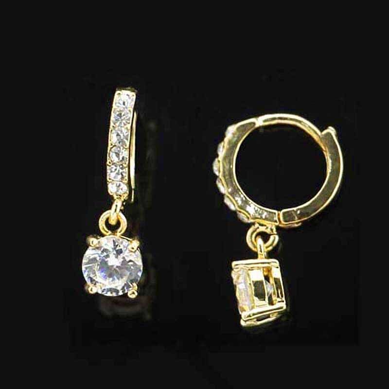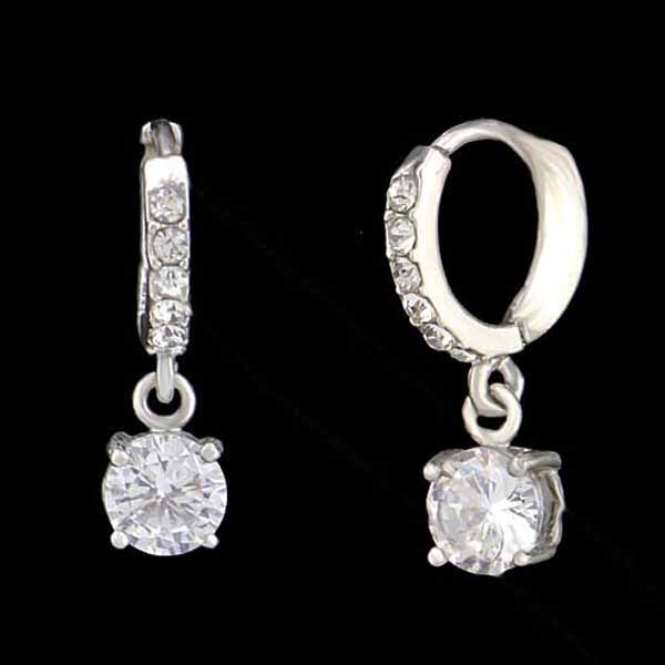 Silver Crystal Drop Huggie Hoop Earrings