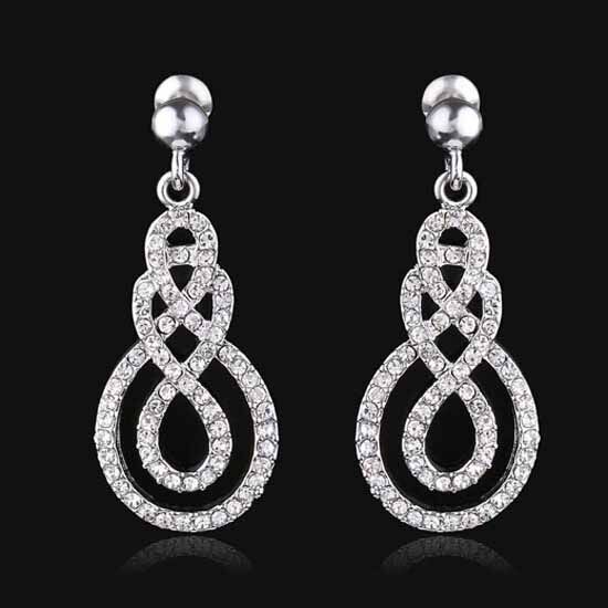 Silver Infinity Crystal Pendant Earrings